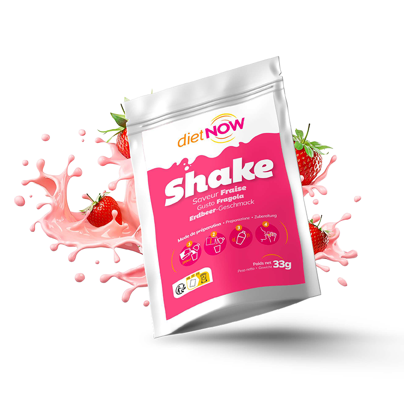 Préparation en poudre pour milk shake arôme fraise. Substitut de repas pour contrôle du poids